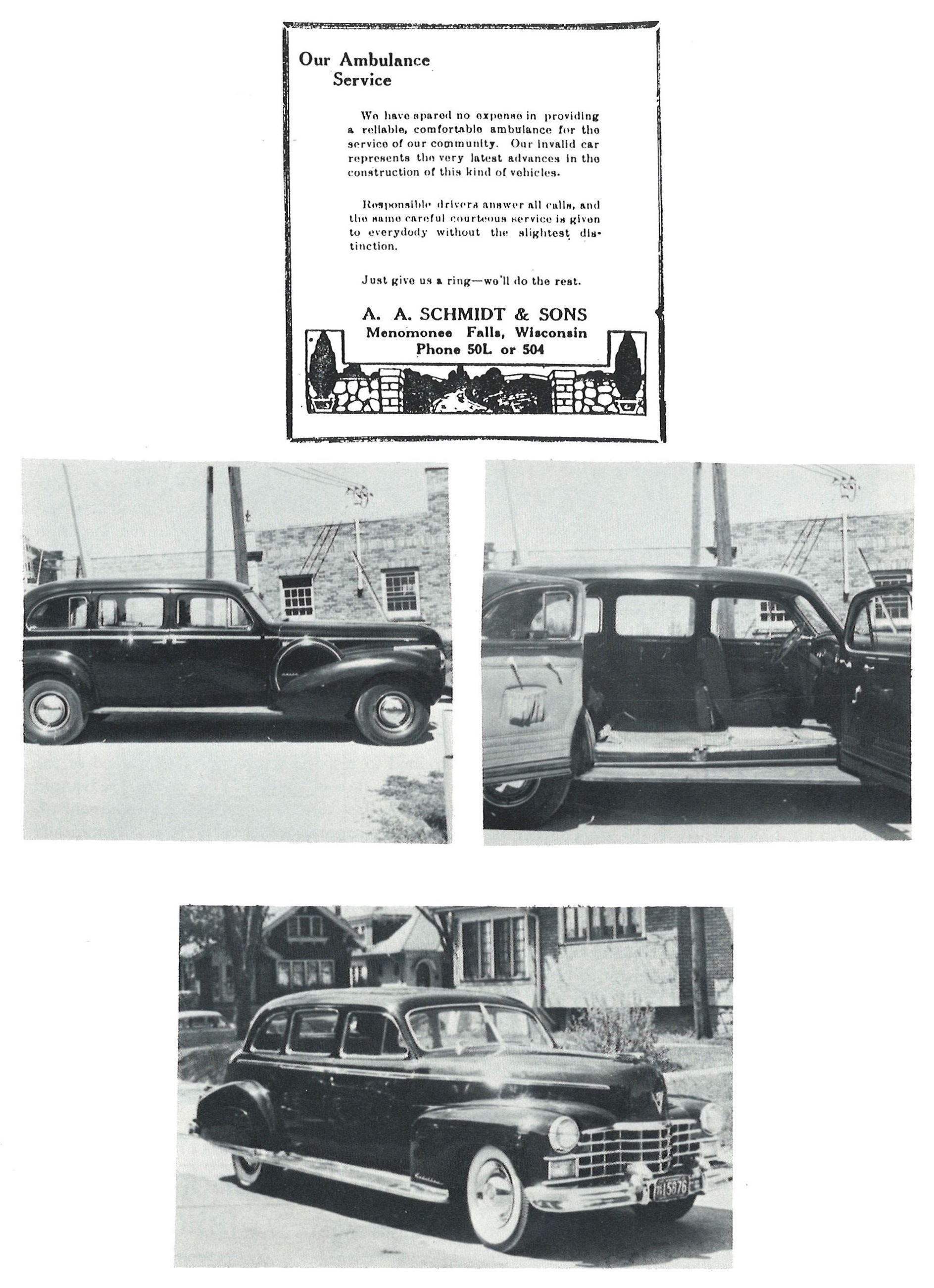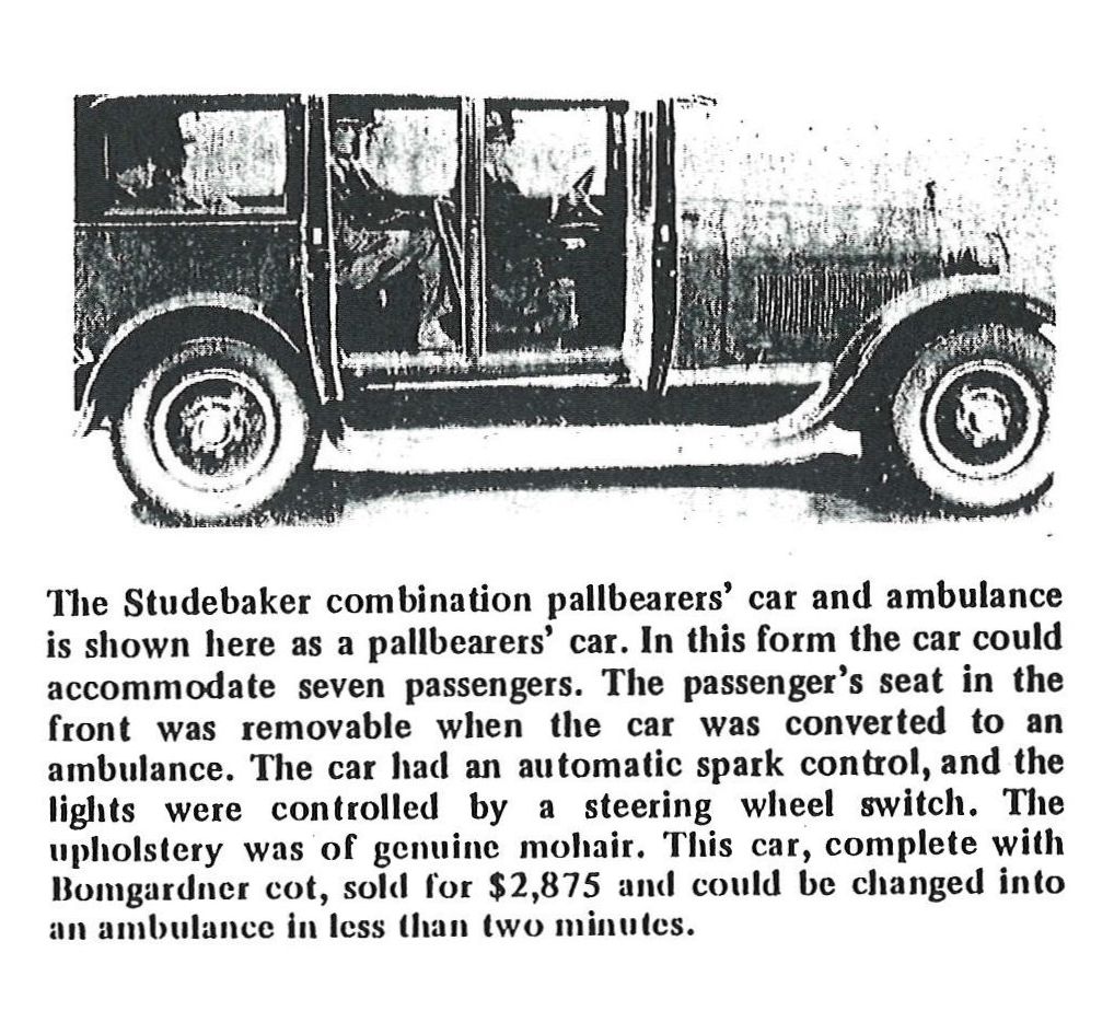 During the 1800s, citizens such as the village doctor and funeral homeowner handled emergency medical services. The first vehicle used was a Ford Model T in 1919, followed by a 1926 Studebaker Big Six which was used as a combination ambulance and pallbearer's car.
